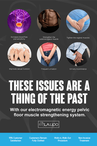 LA-EMS Incontinence Treatment (replacement for EMSella). May aid in the treatment of an overactive bladder by strengthening pelvic floor muscles. Electromagnetic impulses that enhance the power and contraction of these muscles.